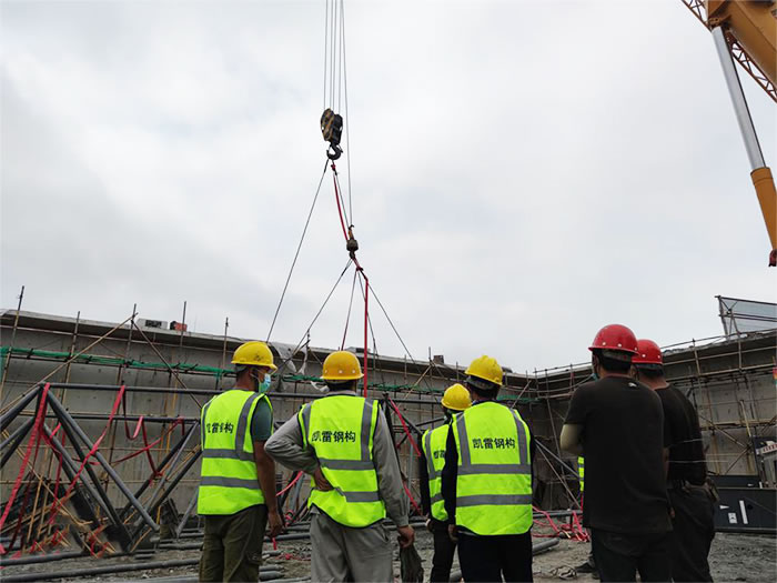 6.为确保.乐陵加油站球形网架安装顺利,应有详细的乐陵施工组织设计。网架安装必须保证结构的稳定性和不产生的附加变形。